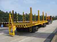 用途:PC型平板運(yùn)輸車適用于廠區(qū)、車站、港口、貨場、倉庫、車間等場所,是必備的短途輪式運(yùn)輸車輛,其行駛動(dòng)力為牽引車或中型拖拉機(jī)。